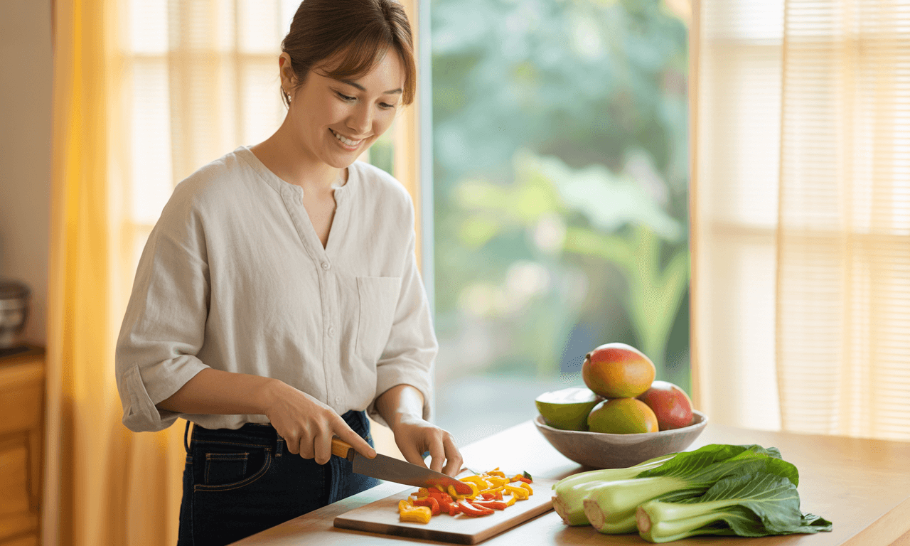 1) 기름지고 단 음식의 섭취를 줄이고, 채소와 과일을 풍부하게 섭취하세요.
